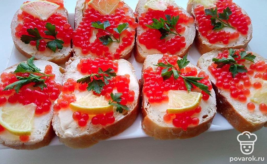 Бутерброды в состав, которых входит красная икра получаются очень вкусными и аппетитными. Мало кто откажется от бутербродов с икрой, именно поэтому данные бутерброды очень быстро уходят на праздничном столе.