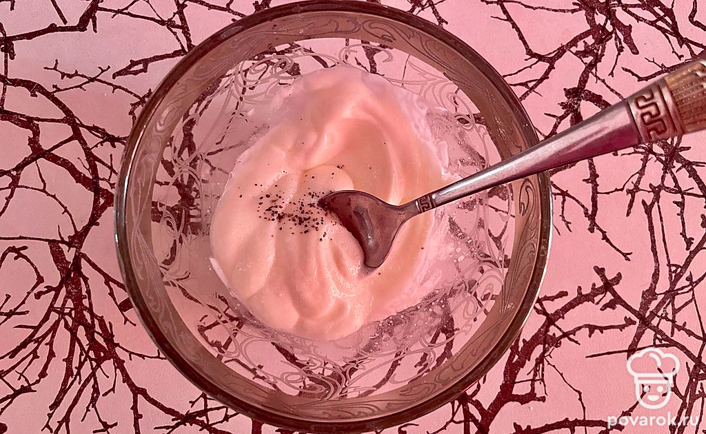 В отдельной тарелке смешайте майонез, перец, соль и лимонный сок.