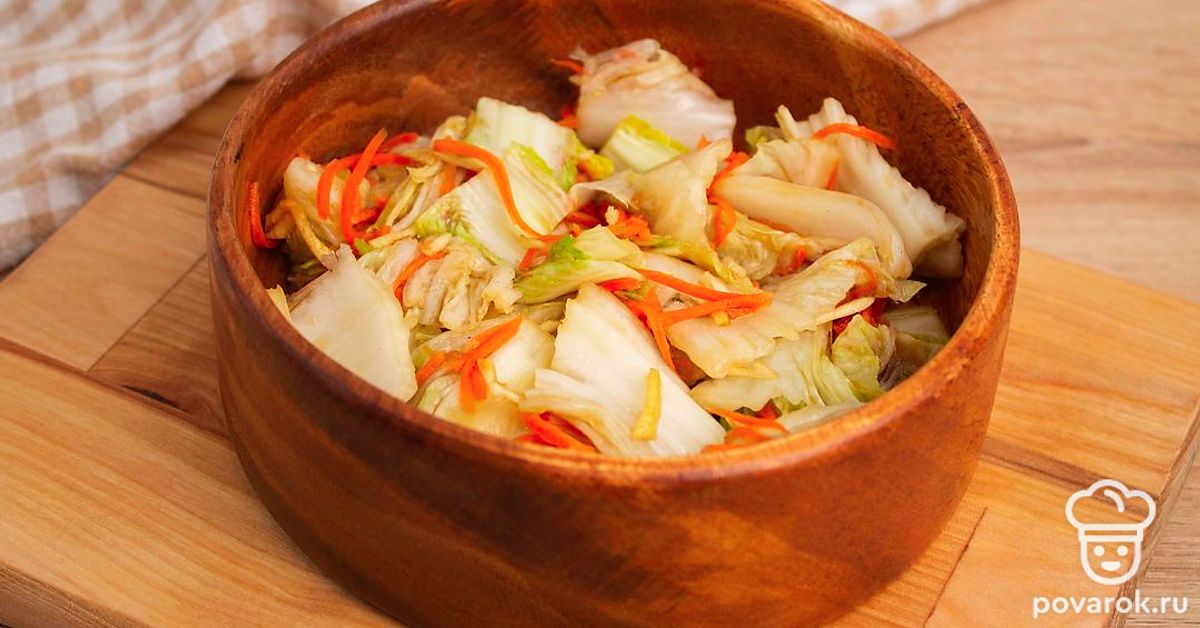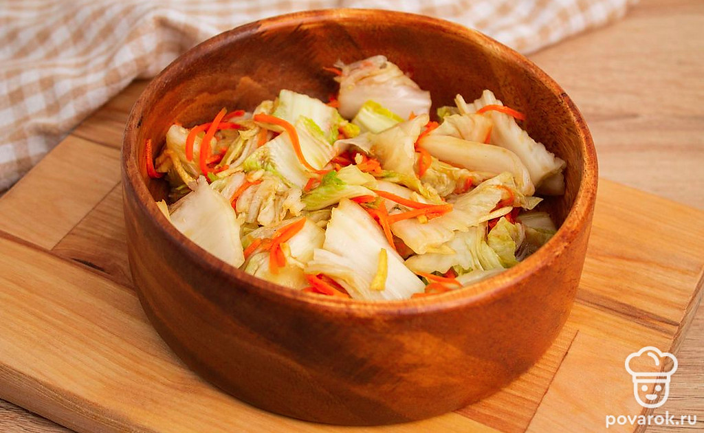 Храните заготовку в холодильнике, перед подачей нарежьте толстыми или тонкими пластинами поперек кочана. Приятного аппетита.