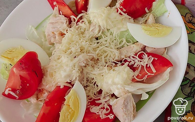 Салат «Цезарь» с майонезом и обжаренным тостовым хлебом