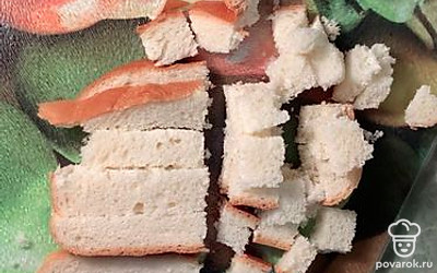 Нарезаные кусочки хлеба переложить в пакет, полить оливковым маслом, подсолить, добавить прованские травы и сухой чеснок. Все перемешать, выложить на противень и запечь у духовке 5 минут при 160 градусов.