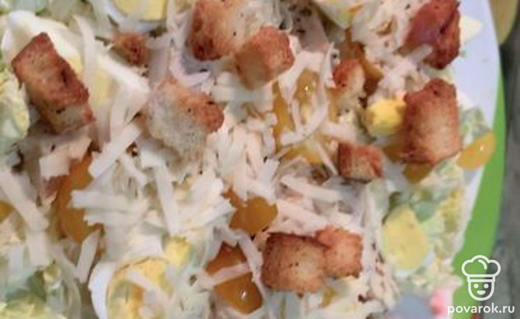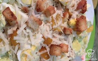 Ну и последним шагом будет посыпать тертым сыром и ароматными сухариками.