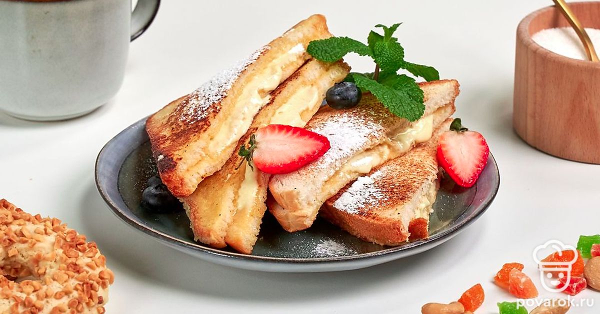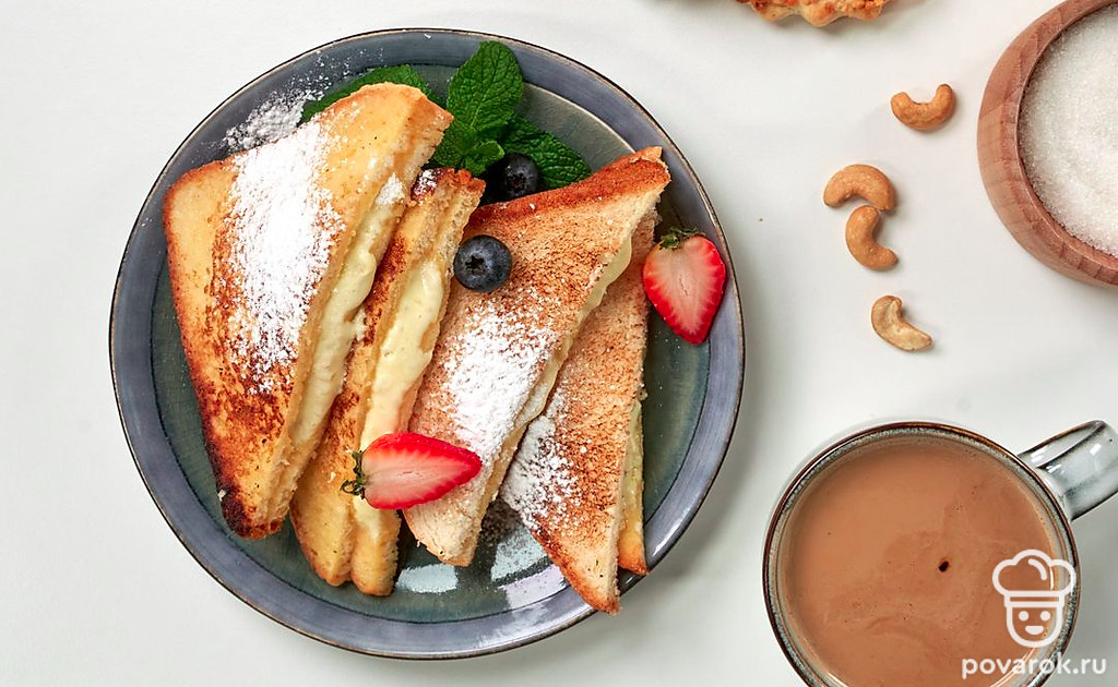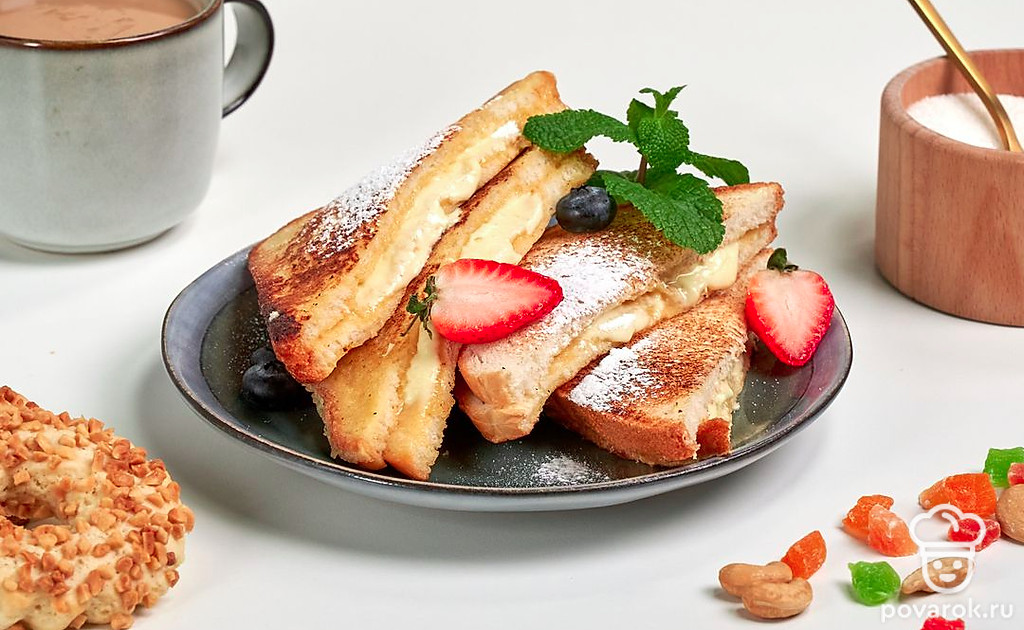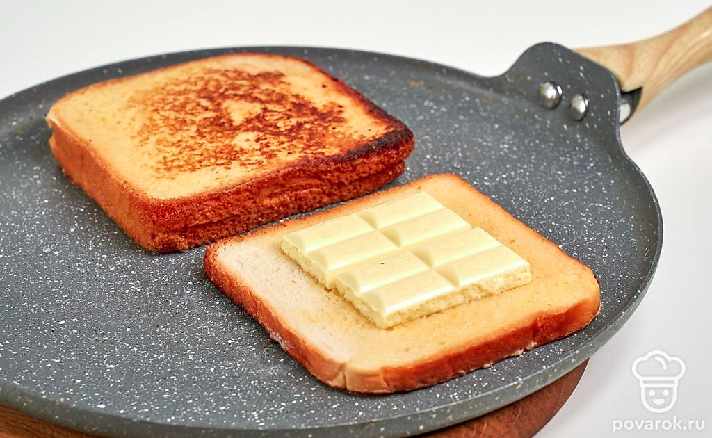 Тост с белым шоколадом — один из вариантов всемирно известных французских тостов. Это отличный завтрак для сладкоежек. В процессе обжаривания хлеба шоколад плавится и впитывается в нежный мякиш. В классической рецептуре используется специальный тостовый хлеб. По желанию можно взять обычный и даже вчерашнюю булку. Если вы заинтересованы в качестве белого шоколада, всегда читайте состав на упаковке. В идеале в нем не должно быть гидрогенизированных жиров, пальмового масла, кондитерского жира.