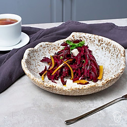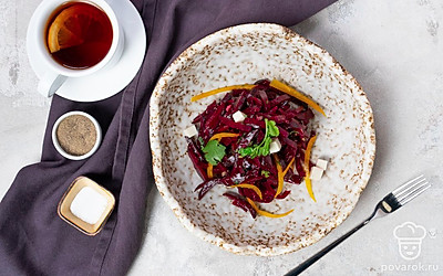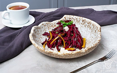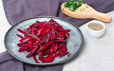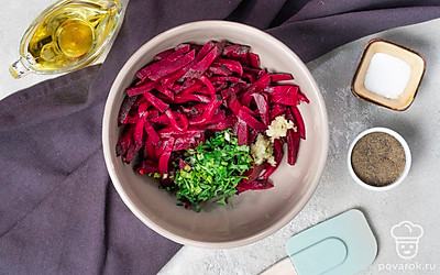 Этот рецепт поможет приготовить очень вкусный и полезный салат, затратив при этом минимум сил и времени. Сочная зелень и жгучий чеснок прекрасно дополняют питательную свеклу, создавая удивительное сочетание. В этом рецепте используется свежая свекла. По своему вкусу она слегка отличается от вареной, менее сладкая и слегка горьковатая. Однако в готовом салате это совсем не чувствуется.