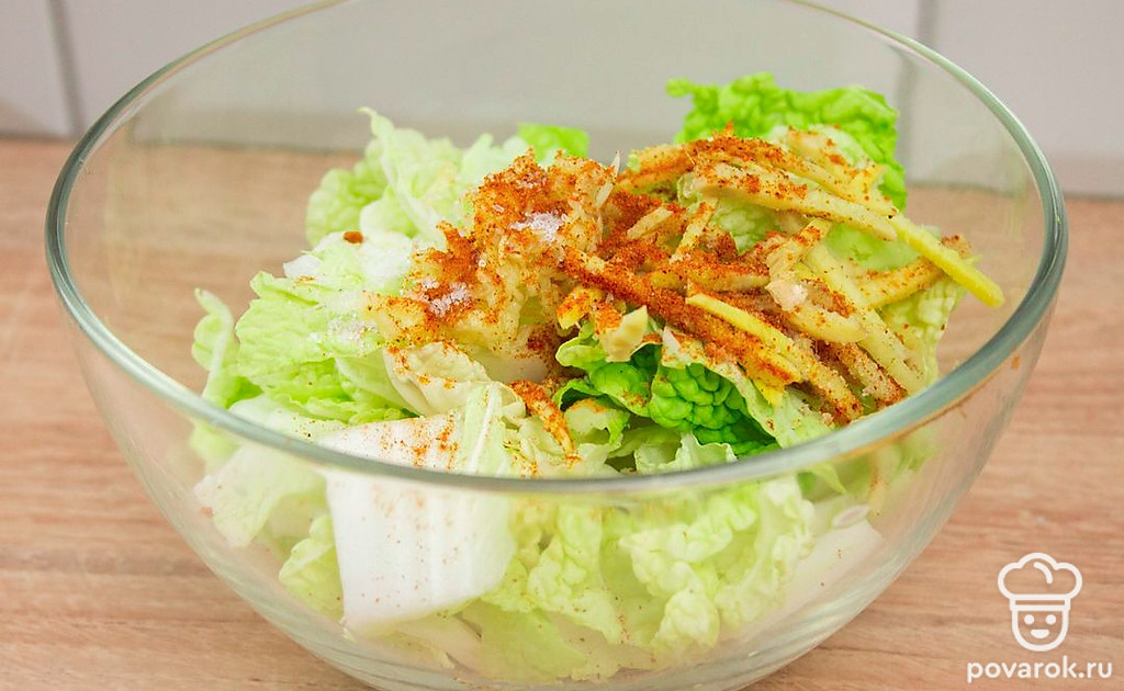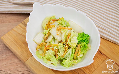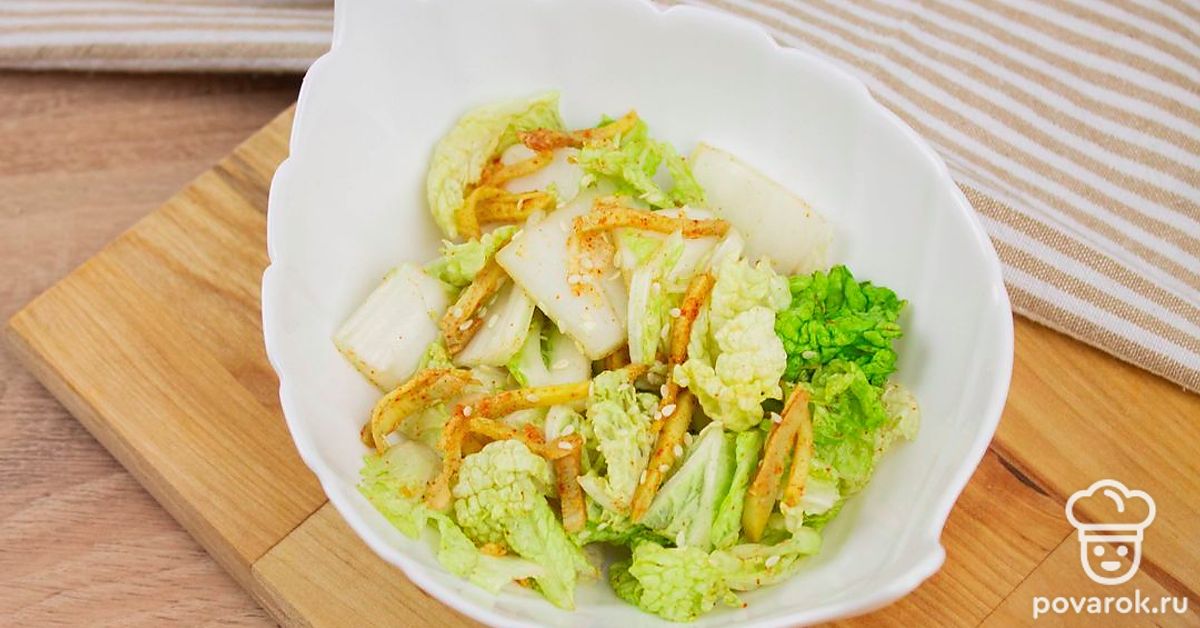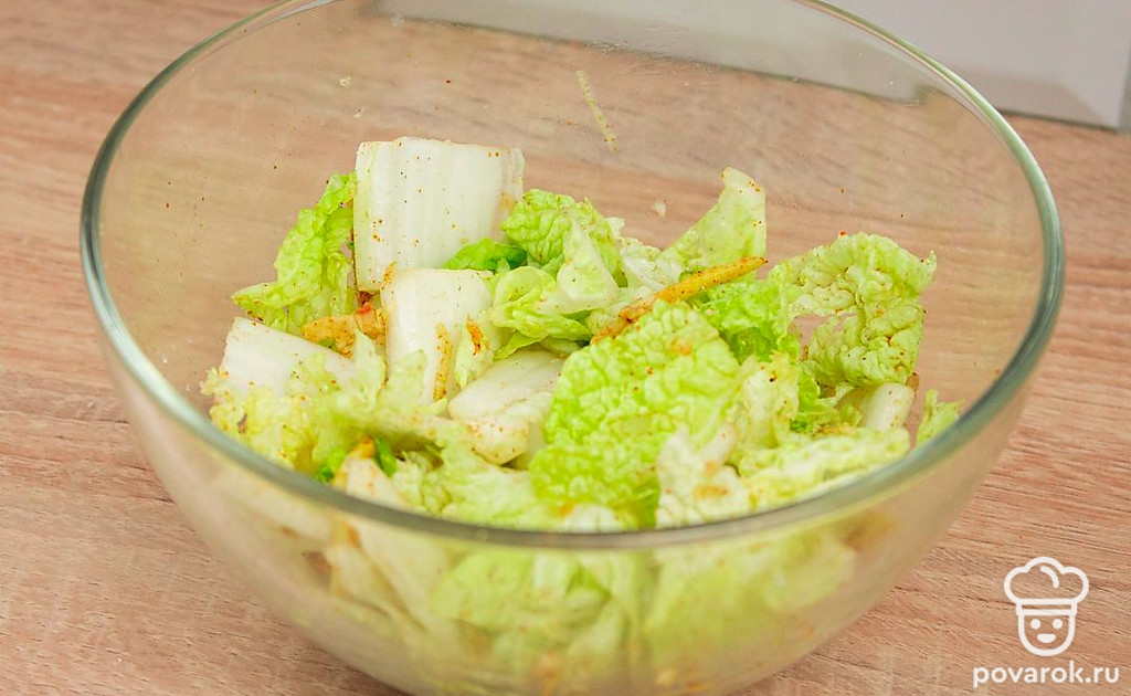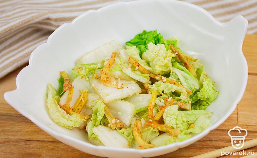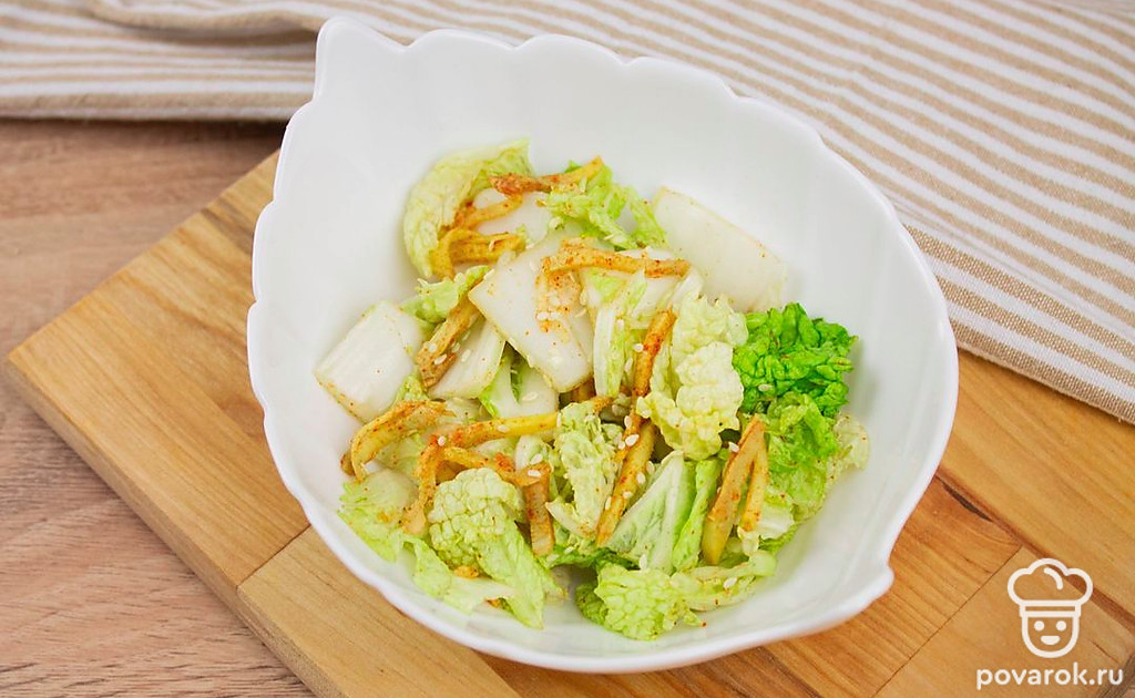 Кимчи представляет из себя популярную корейскую закуску из пекинской капусты и других овощей. Несколько веков кимчи считается эталоном диетического питания. Оригинальный рецепт включает в себя ферментацию, т.е. в готовом блюде размножаются лактобактерии, которые превращают сахар в молочную кислоту, за счет чего кимчи консервируется. Интересно, что несколько веков назад глиняные горшки с кимчи закапывали в землю. Блюдо обладает приятной кислинкой с нотками пряного послевкусия.