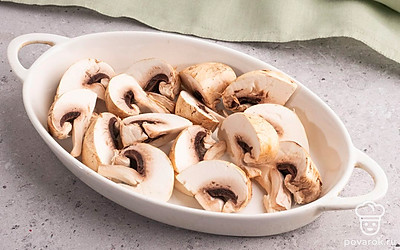 Смажьте противень или форму для запекания маслом, разложите нарезанные грибы и отправьте в духовку. Периодически переворачивайте грибы до румяной корочки. Выньте из духовки через 25 минут и дайте остыть.