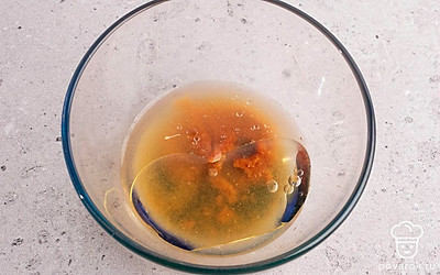 Приготовьте соус мисо в отдельной миске. Взбейте вилкой мисо-пасту с яблочным уксусом, маслом авокадо, сиропом агавы или кленовым сиропом.