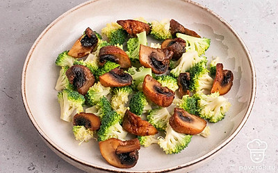Мелко нарежьте красный лук, брокколи. Смешайте ингредиенты с грибами. Блюдо готово! При желании добавьте соус или подавайте его отдельно.