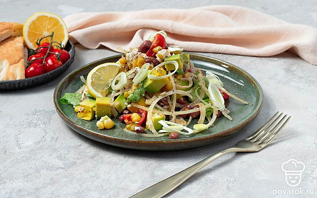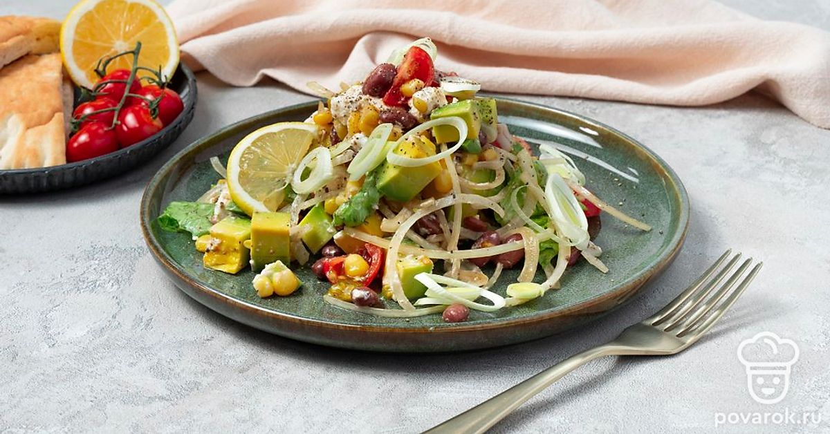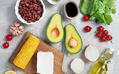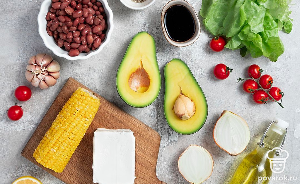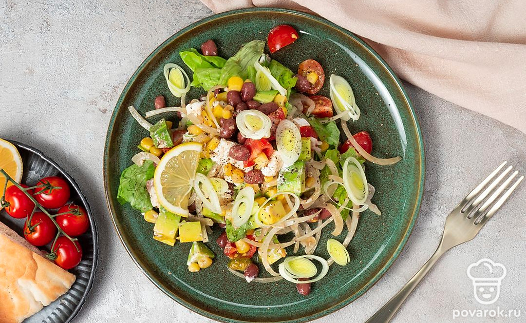 Салат с кукурузой можно обогатить белком. Для этого добавьте в него фасоль и сыр фетаксу. Этот вид мягкого сыра очень популярен. Фетакса является аналогом сыра фета и отличается от него технологией производства. Продукт имеет белый цвет, мягкую консистенцию, но отличается менее соленым вкусом и меньшей склонностью к деформации. Отличную компанию сыру и кукурузе составят черри и авокадо — они добавят яркости и новых вкусовых оттенков.