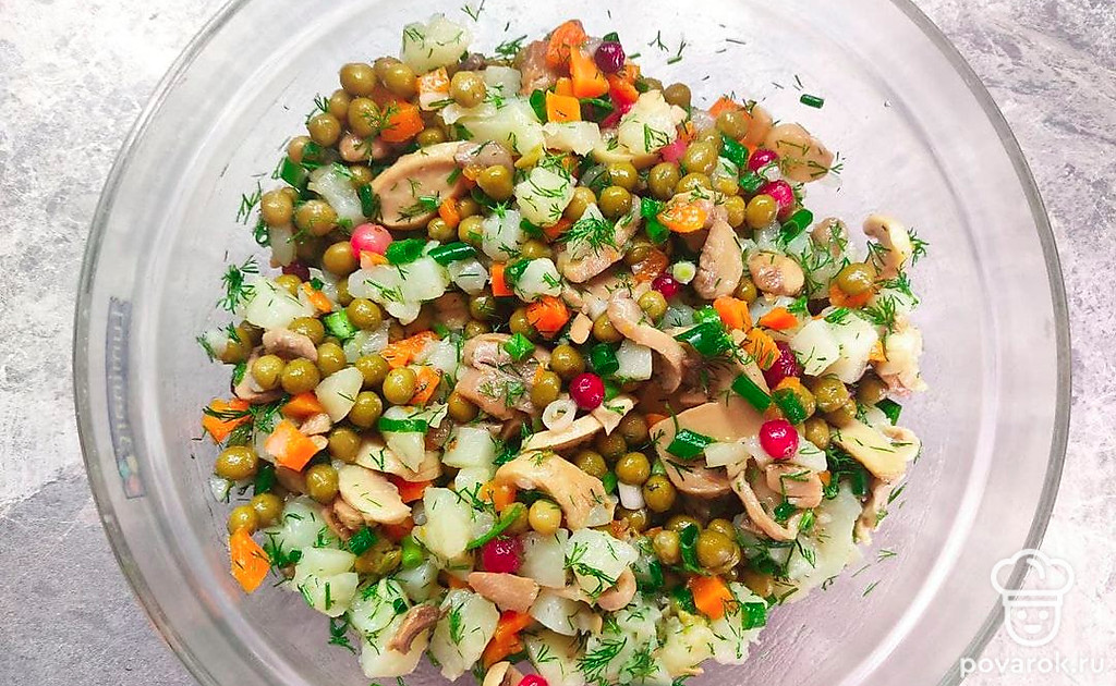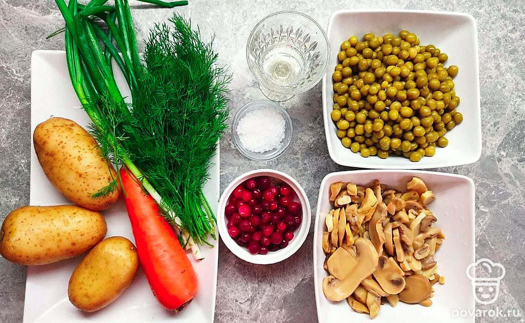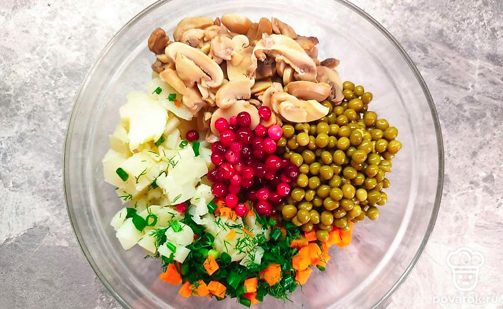 В салате сочетание овощей с клюквой придает сладковатый вкус. Клюква содержит в себе огромное количество витаминов, укрепляет иммунитет, повышает защитные функции организма. С данной ягоды готовят морсы, сиропы, добавляют в салаты и даже используют для маринада мяса.