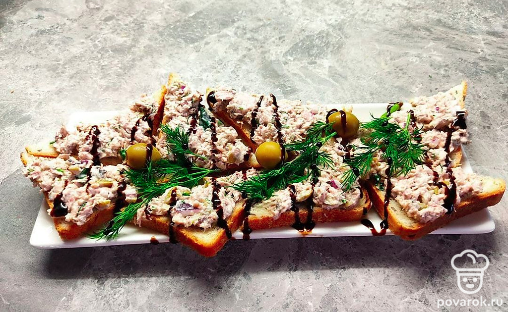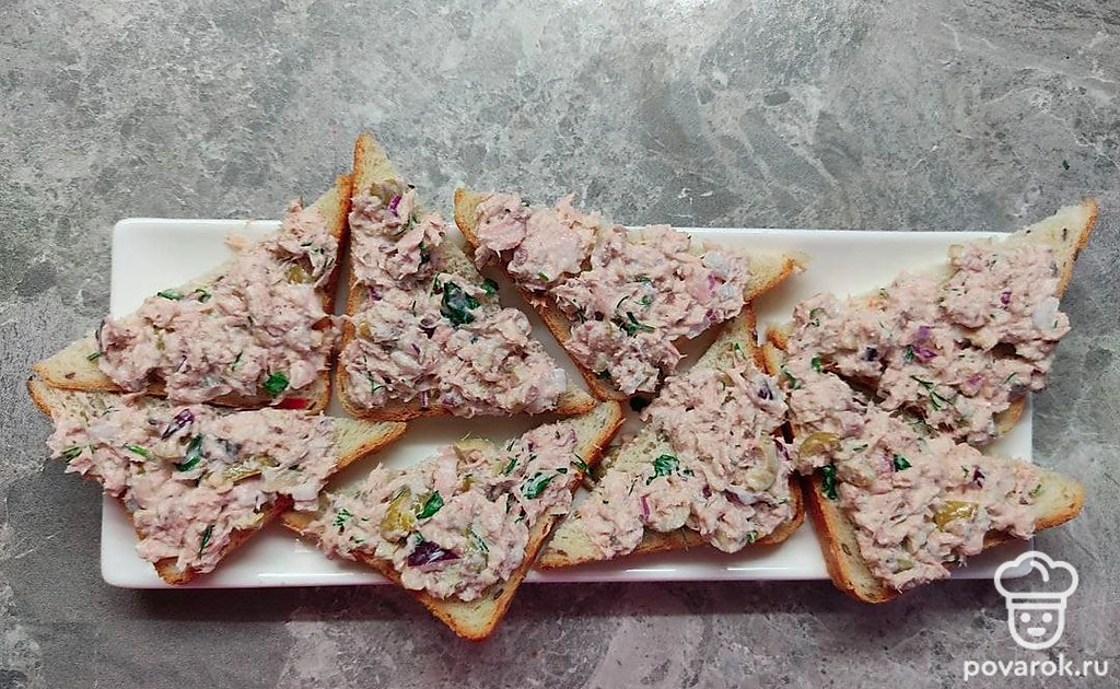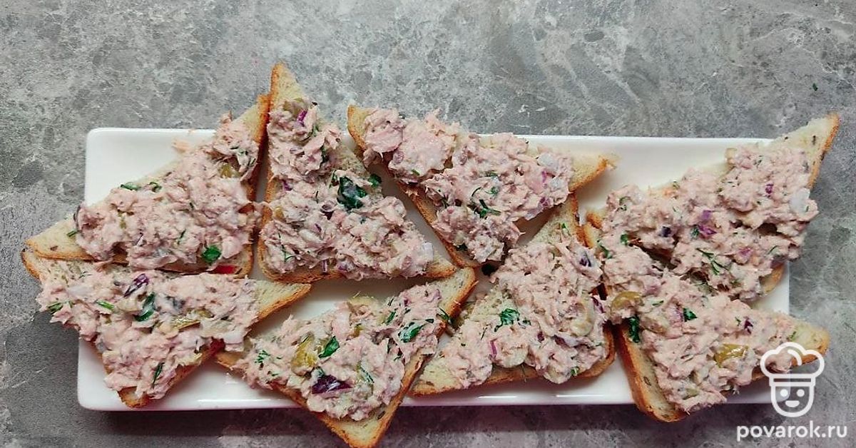 Когда под рукой есть консервированный тунец и совсем мало времени для приготовления блюда, этот рецепт поможет сделать быстрый и сытный перекус в виде бутербродов. Сочетание рыбы с зеленью и оливками произведет положительное впечатление. Приготовление займет совсем мало времени, а ингредиенты легко найти в холодильнике у каждой хозяйки.