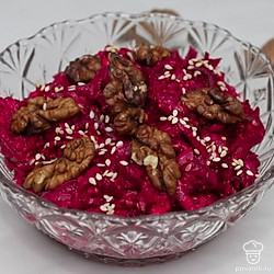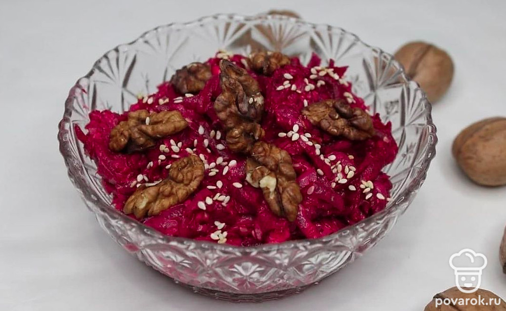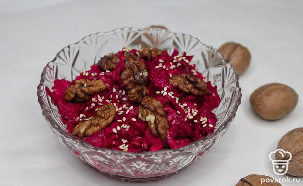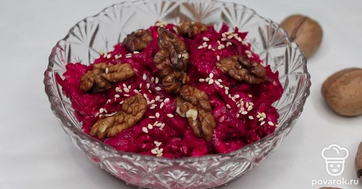 Свекла — это овощная культура с древнейшей историей, насыщенная витаминами и микроэлементами. Салаты из нее — настоящая находка для хозяйки, которая вдумчиво относится к рациону своей семьи. Они несложные в приготовлении, состав можно разнообразить, добавляя различные орехи, заправки. Готовится достаточно быстро, ему не нужно настаиваться. Так что смело готовьте этот салат и на семейный ужин, и на праздничный стол. И внешний вид также порадует, он вполне ресторанный.