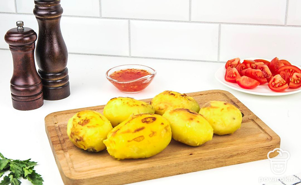 Проверьте картофель на готовность при помощи зубочистки. Если он стал мягкими, то вынимайте его из духовки. Дайте полностью остыть.