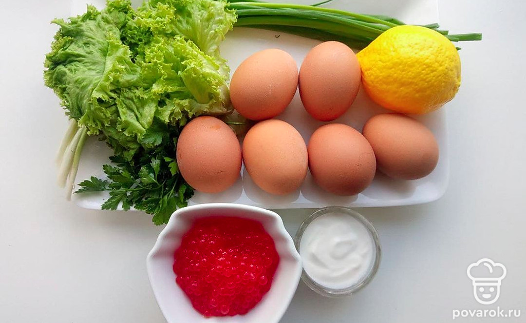 Отварите яйца заранее. Очистите их от скорлупы и выложите на стол с лимоном и зеленью. Икру и сметану разместите в пиалах.
