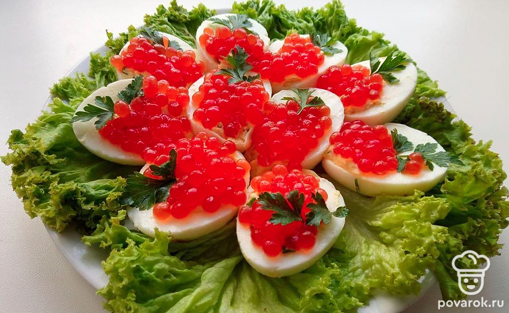 Яйца — это очень популярное блюдо на завтрак, так как они не только очень вкусные, но и очень питательные. Но если нафаршировать яйца красной икрой, то блюдо с легкостью может подарить гастрономические ощущения.