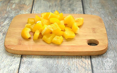 Сладкий перец очистите от семян и нарежьте кубиками.
