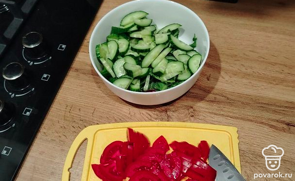 Самый быстрый овощной салат. Не нужно ничего варить. Просто нарежьте и сделайте заправку. Быстрое, легкое и полезное дополнение к ужину.