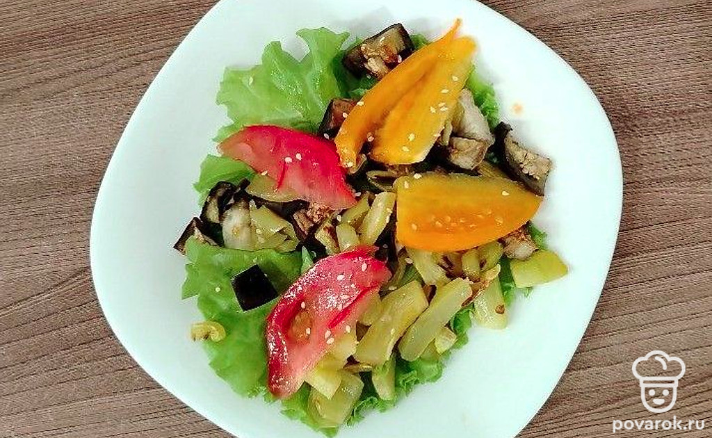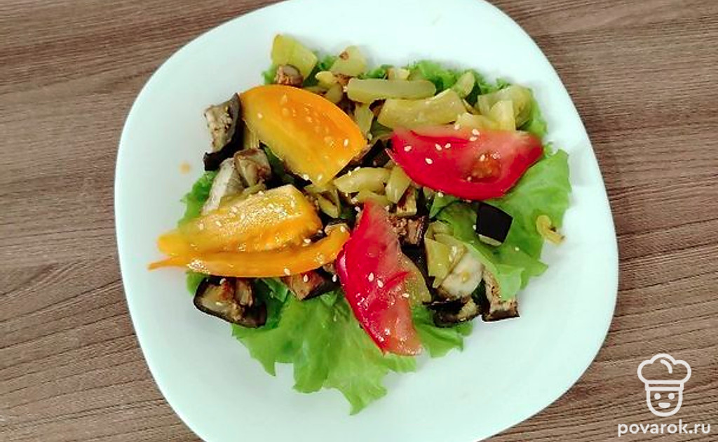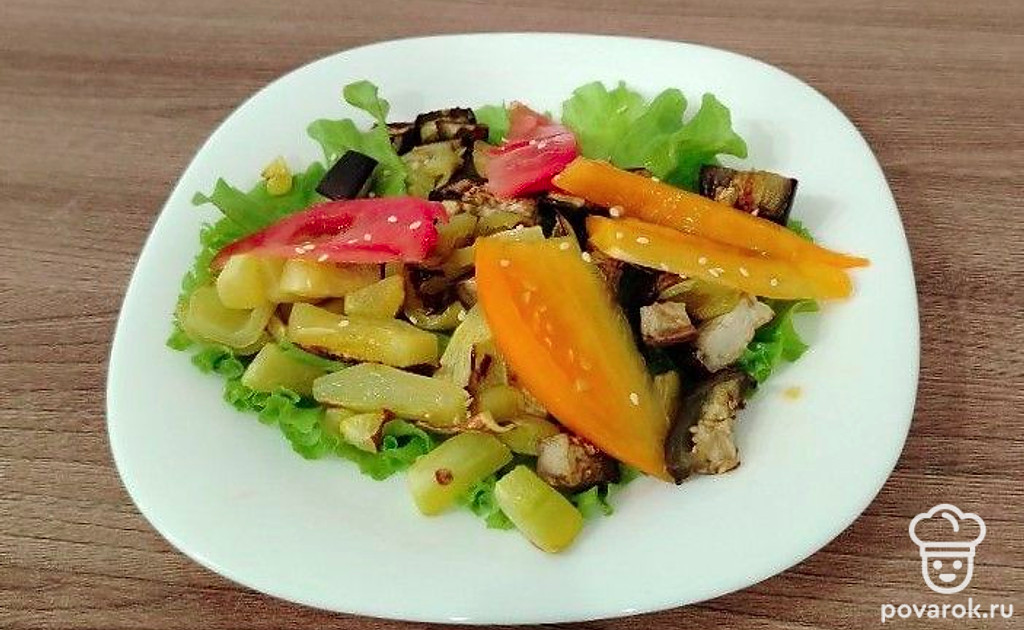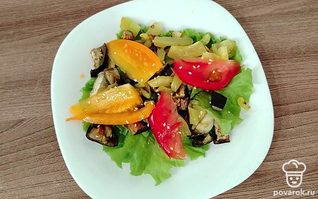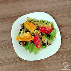 Невероятно вкусный и необычный салат. Он сочетается в себе как свежие зелень и овощи, так и запеченные.