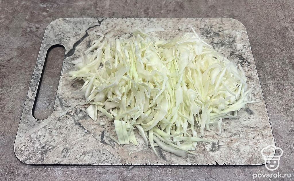 Мелко нашинкуйте капусту.