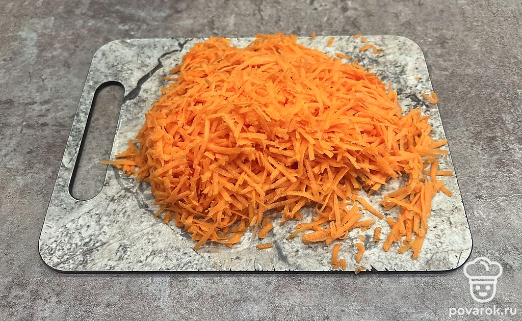 Морковь натрите на средней терке.