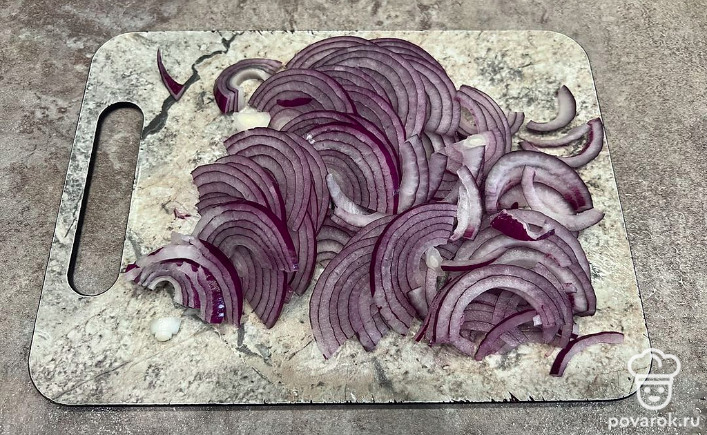 Лук нарежьте полукольцами.