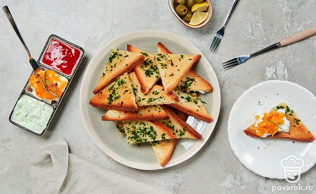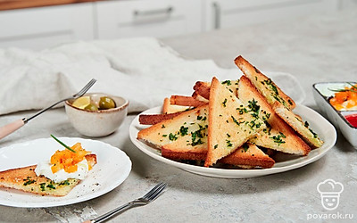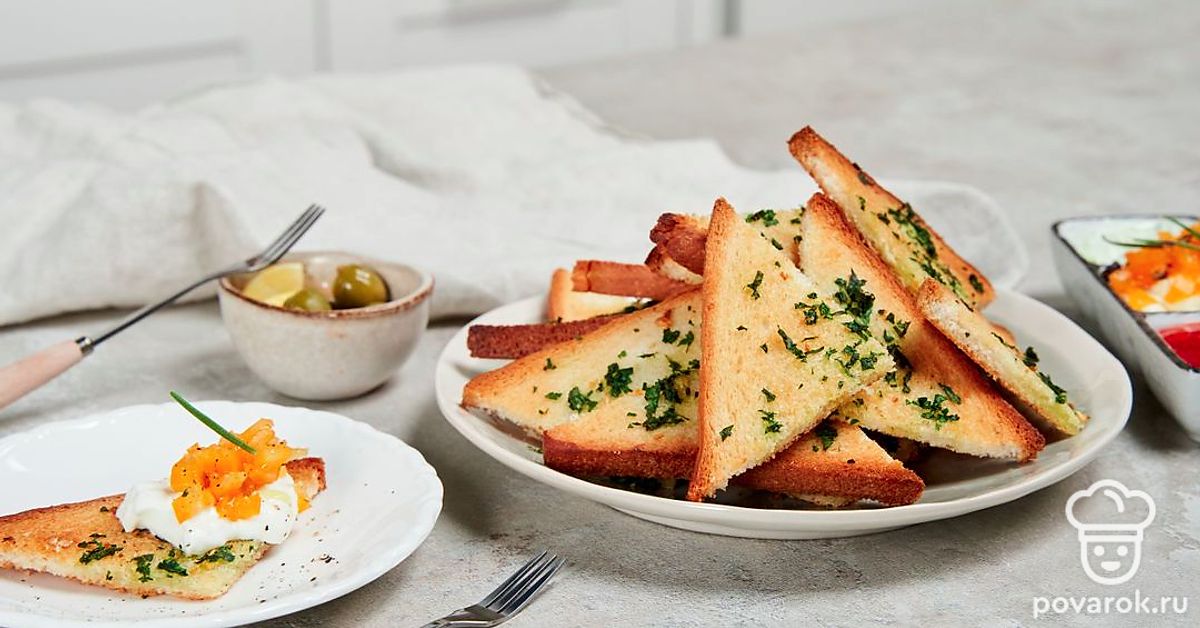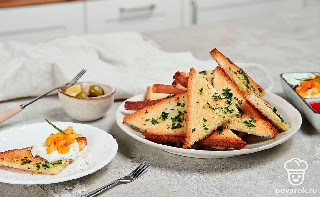 Секрет классических тостов состоит в правильном выборе хлеба. Хлеб для тостов не крошится и долгое время остается мягким. А благодаря структуре испеченного хлеба растопленное сливочное масло или сыр равномерно пропитывают тост. Простые тосты, приготовленные с чесноком, станут полезным перекусом. Наличие аллицина в чесноке помогает организму справляться с бактериями и инфекциями. Помимо всего, в чесноке есть витамин C, B, калий и кальций.