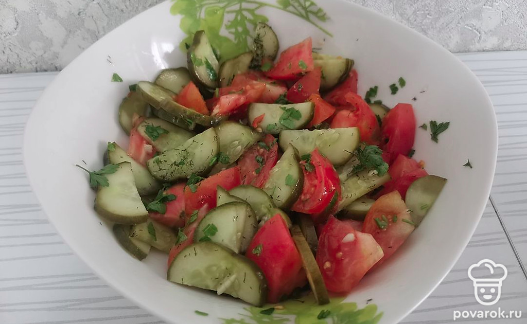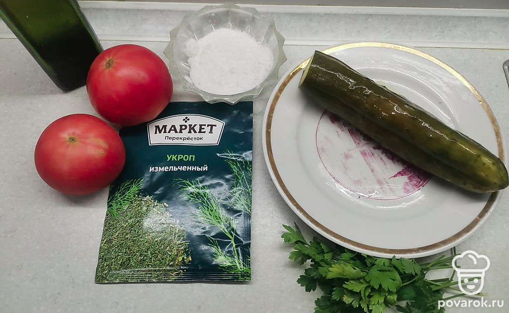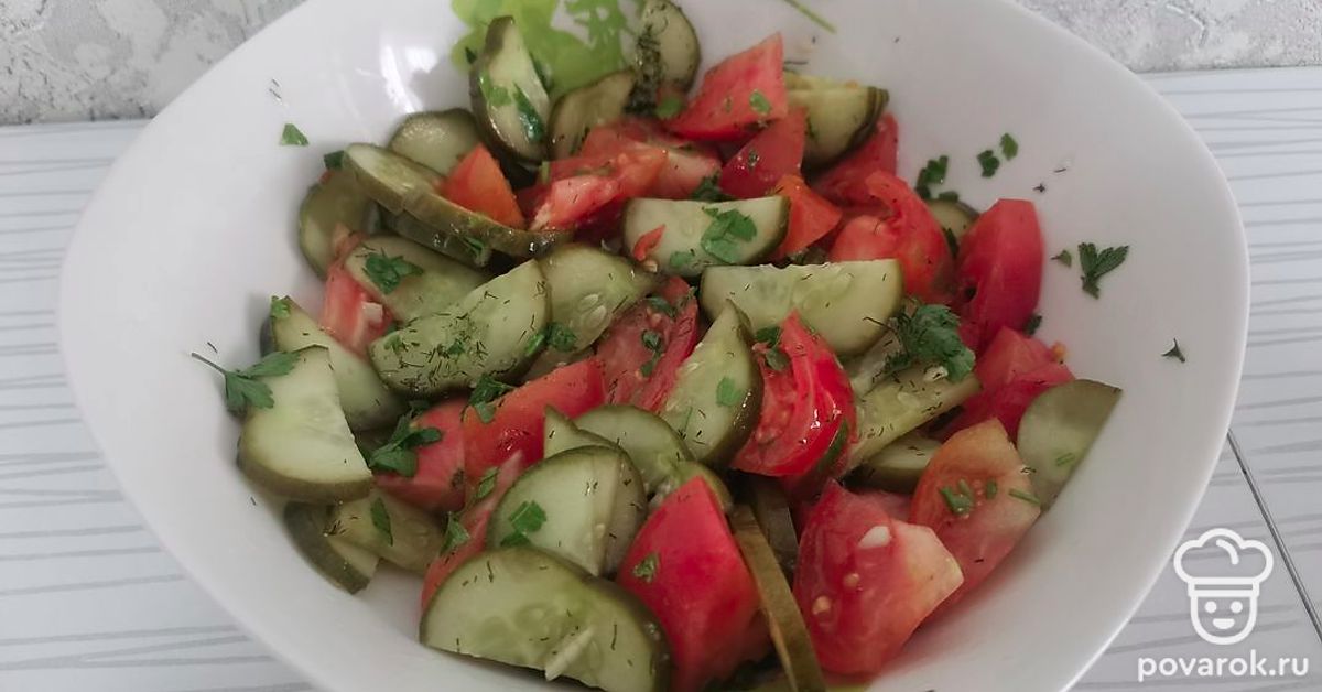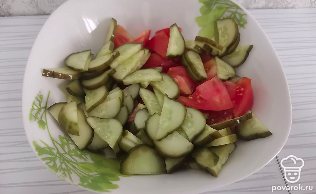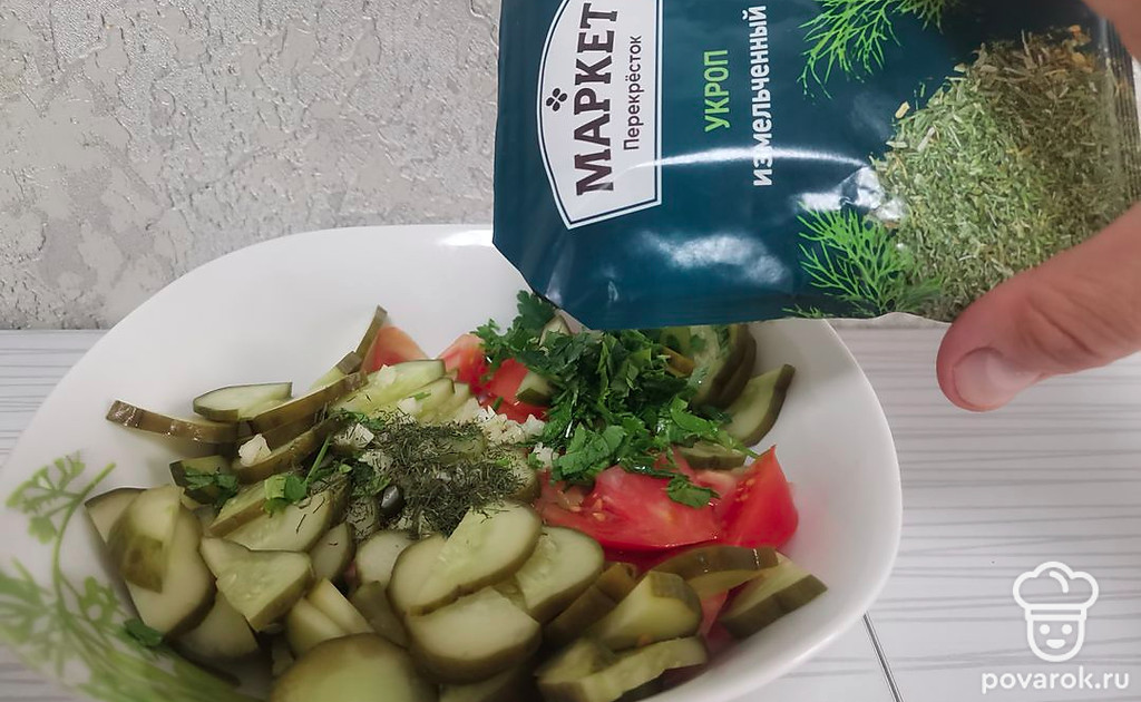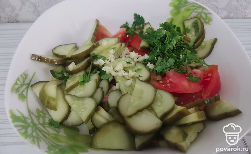 Сочный салат с малосольными огурцами. Попробуйте, вам обязательно понравится!
