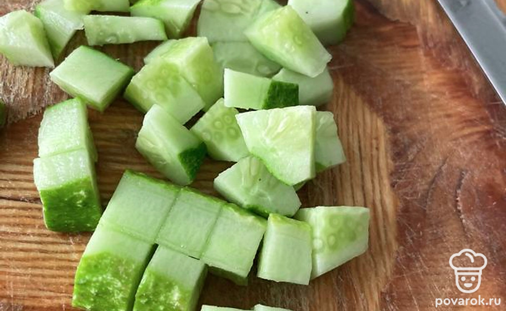 Мелко нарежьте огурец.