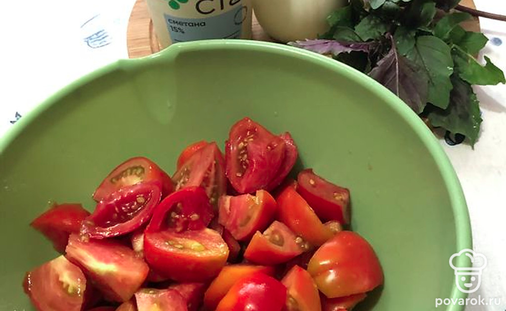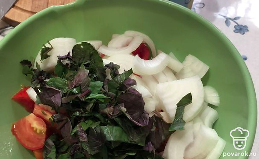 Помидоры моем и протираем салфеткой, лук очищаем, зелень моем холодной водой.