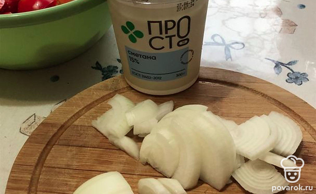 Добавляем соль по вкусу и три ложки сметаны. У меня 15%, но можно брать сметану любой жирности.