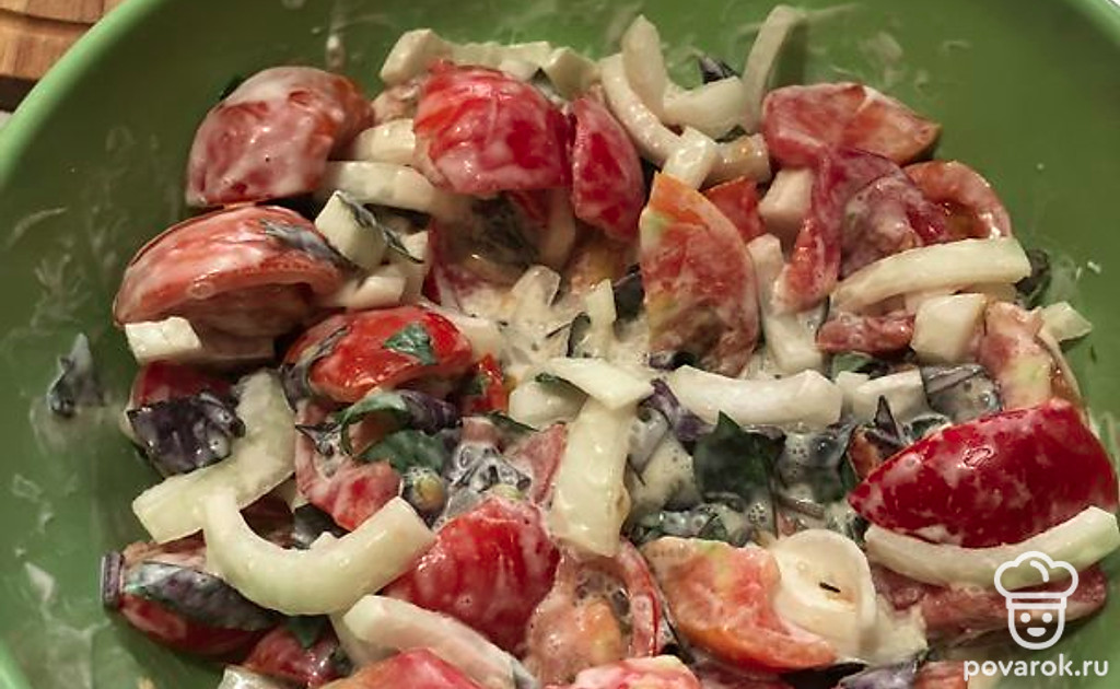 Салат хорошо перемешиваем, даем постоять и пустить сок.