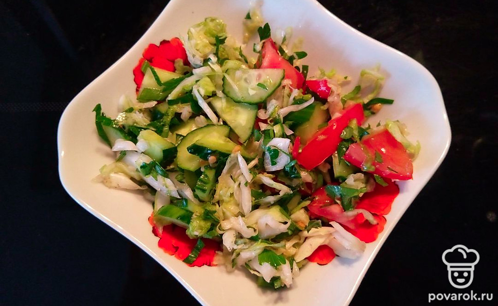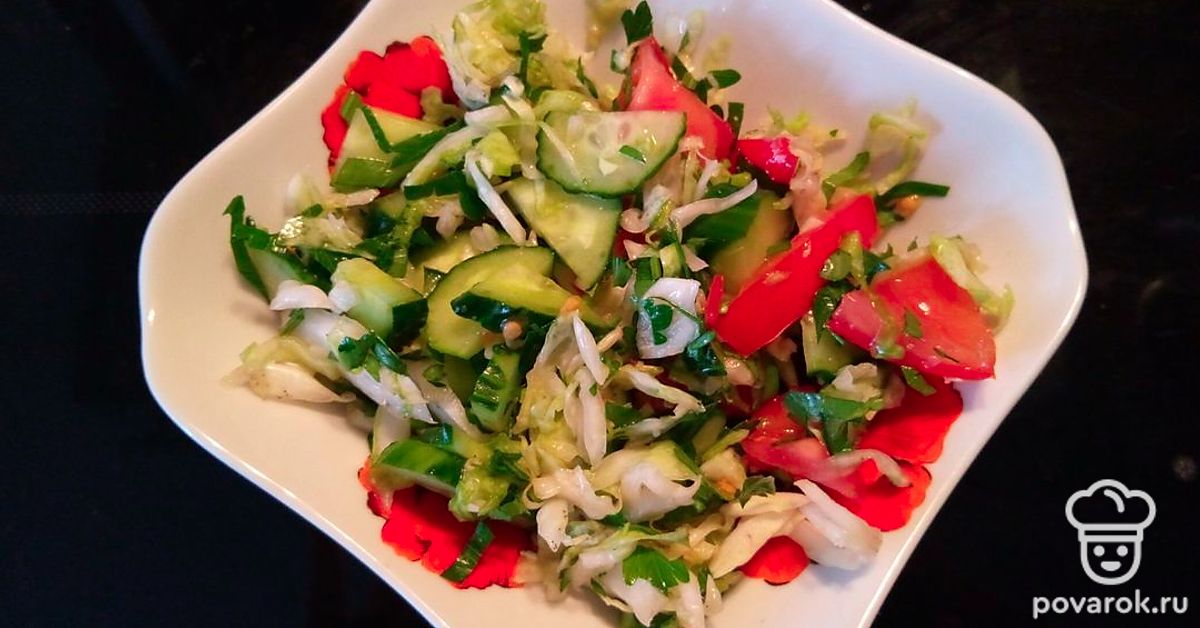 Очень полезный салат, особенно если овощи для его приготовления с собственного огорода. Вкусно и просто!