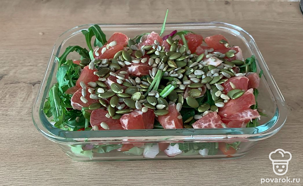 Добавьте тыквенные семечки и семечки подсолнуха.