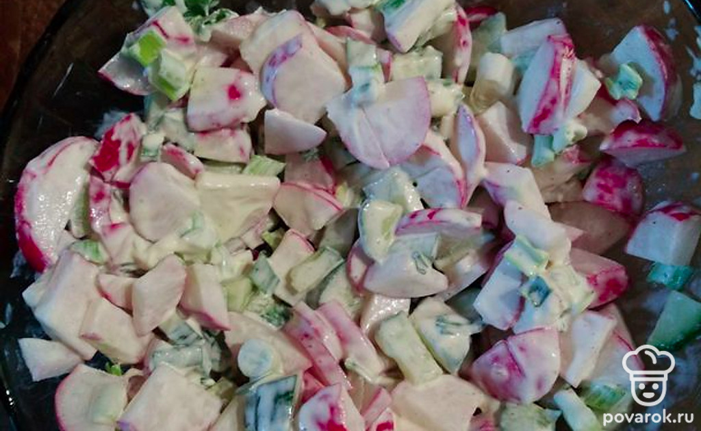 Посолите, поперчите и смешайте все ингредиенты с майонезом.