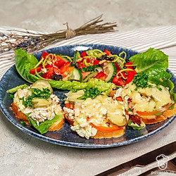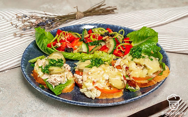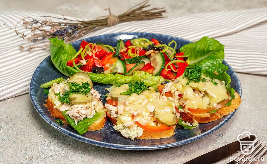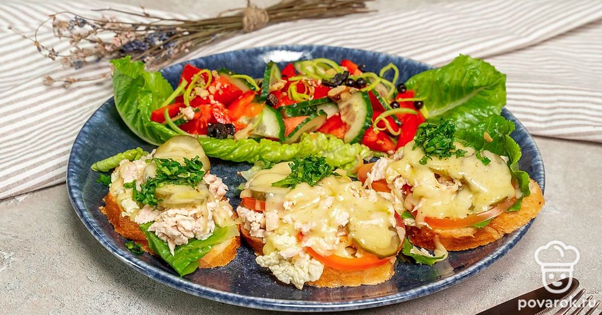 Хрустящие и сытные тосты с пекинской капустой, курицей, огурцом и помидором немного напоминают американские бургеры, однако они намного вкуснее, потому что домашние. А нежный и изысканный вкус пекинской капусты придает закуске особую нотку. Кстати, эта капуста богата белком, каротином, магнием и клетчаткой, необходимой для многих обменных процессов. Включение в рацион пекинской капусты — отличная профилактика авитаминоза.