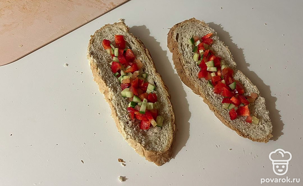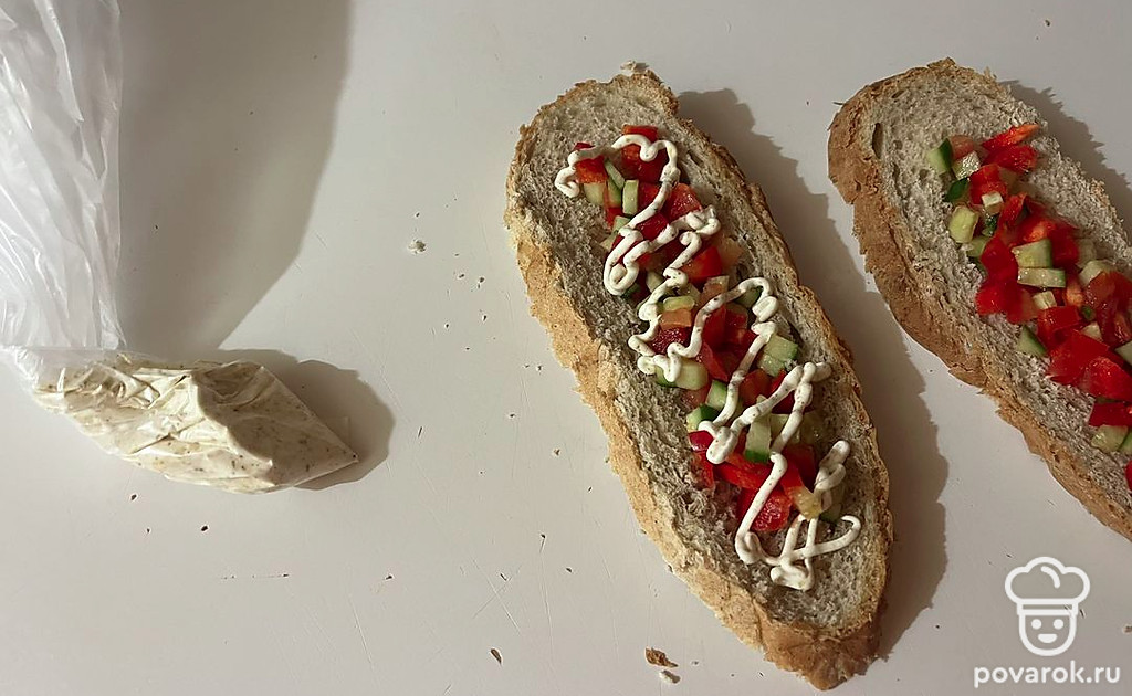Мякиш хлеба слегка утрамбуйте пальцами.
