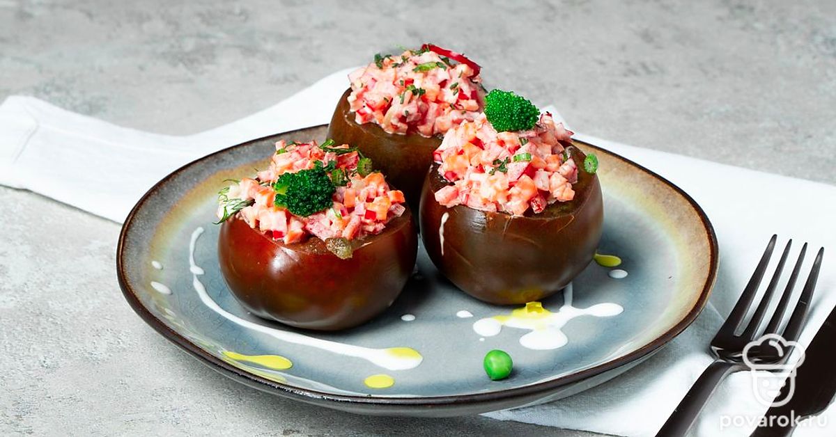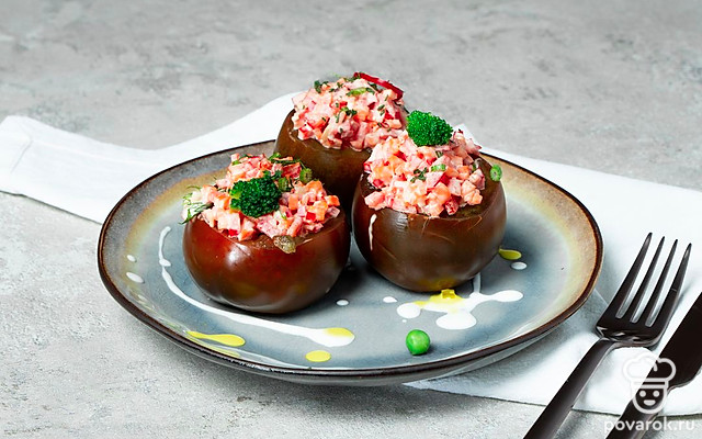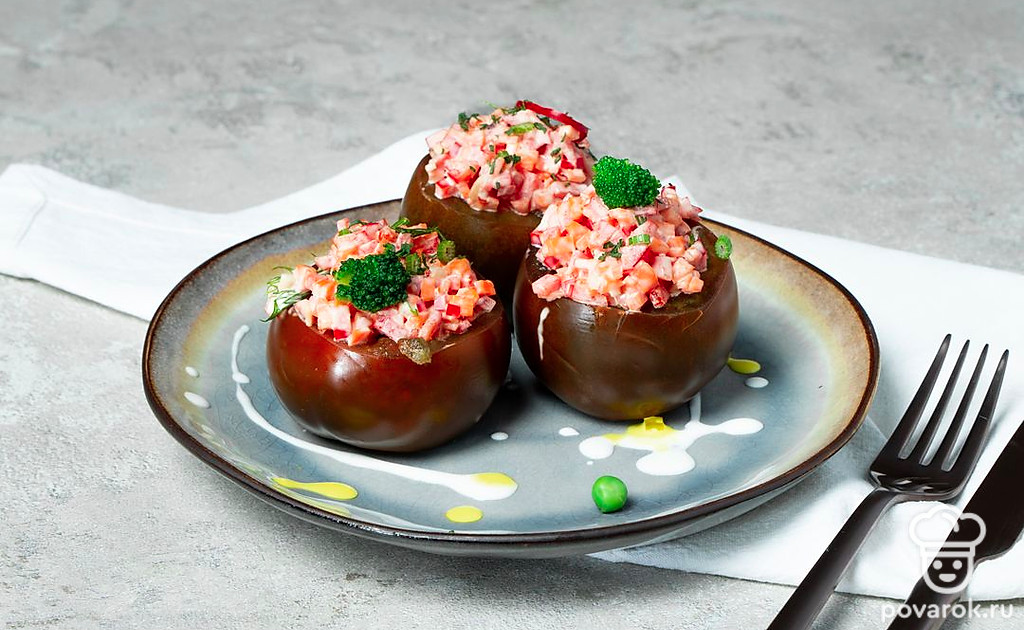 Помидоры — универсальный продукт, который не только дополняет различные блюда, но и может служить главным ингредиентом для приготовления обеда. Фаршированные морковью помидоры — одно из таких полноценных блюд. Начинка из моркови, болгарского перца, зелени, чеснока и майонеза во время приготовления раскрывает свой вкус и пропитывается соком помидора. Для фарширования важно выбирать упругие помидоры, чтобы во время тушения они не развалились. С такой задачей отлично справляются зеленые помидоры.