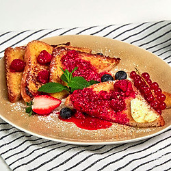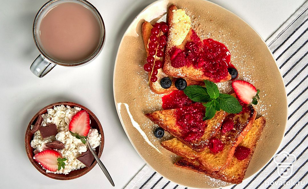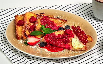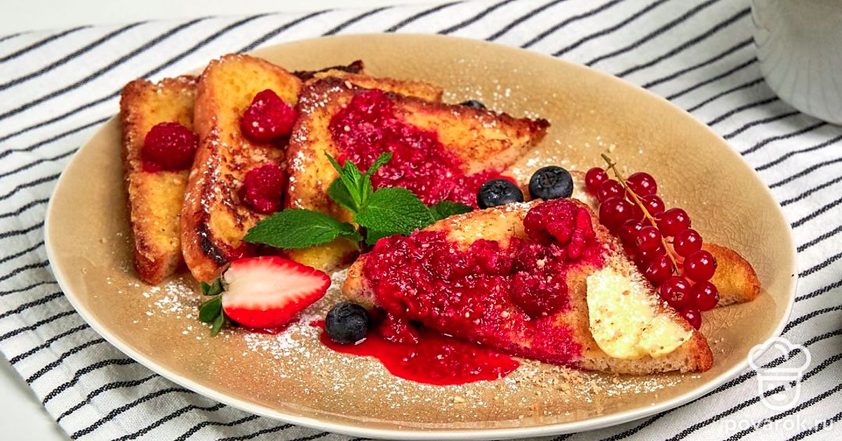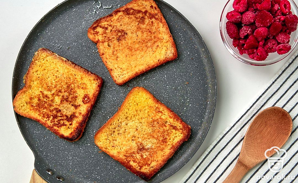 Французские тосты — это нежный десерт, в котором молочная сладость прекрасно сочетается с приятным ароматом пряных трав. А дополняет блюдо малина, делая его еще вкуснее. Ингредиенты в рецепте можно менять, исходя из личных предпочтений. Например, малину можно заменить другими ягодами или даже фруктами, а вместо меда взять сироп, варенье или шоколад. Кстати, подавать тосты с ягодами придумали именно во Франции. Там же позднее появились добавки из орехов, сиропов и соусов.