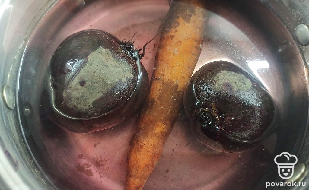 Свеклу и морковь отварите до готовности 20 минут с момента закипания воды. Морковь можете достать через 10 минут.