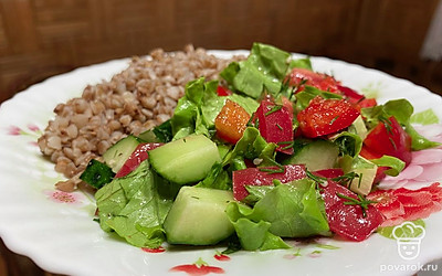 Нашинкуйте свежую зелень и добавьте специи. В качестве заправки используйте лимонный сок.