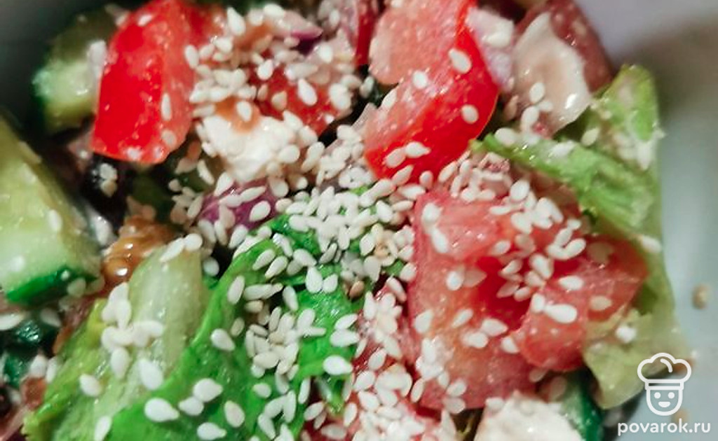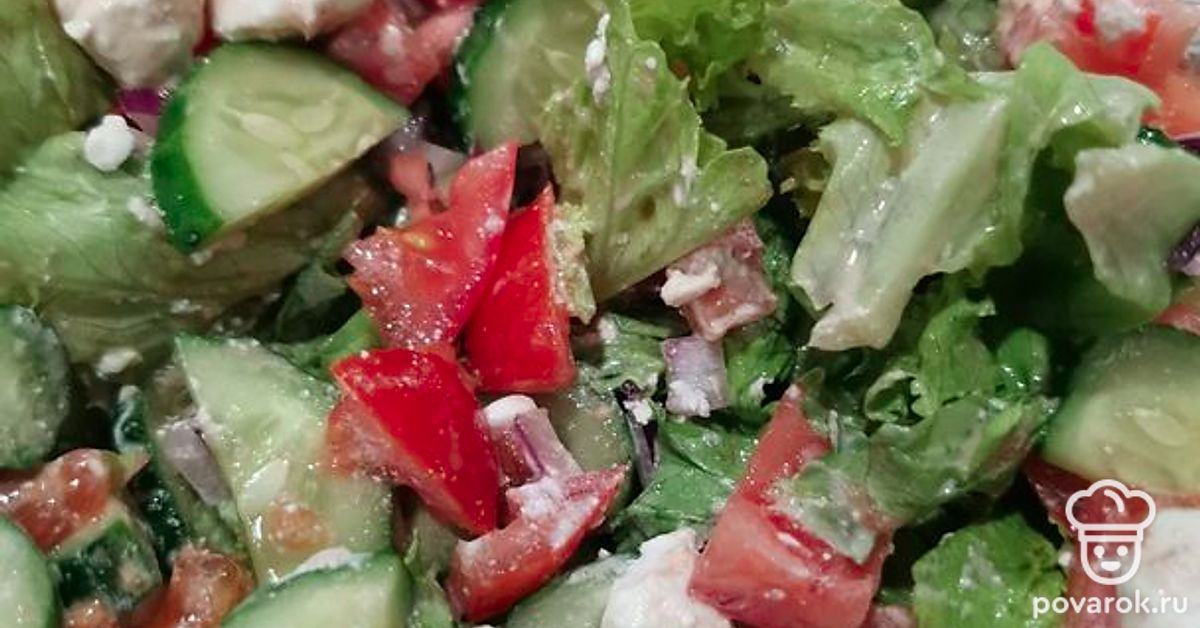Салат «Летний» из свежих с сыром фета и соевым соусом