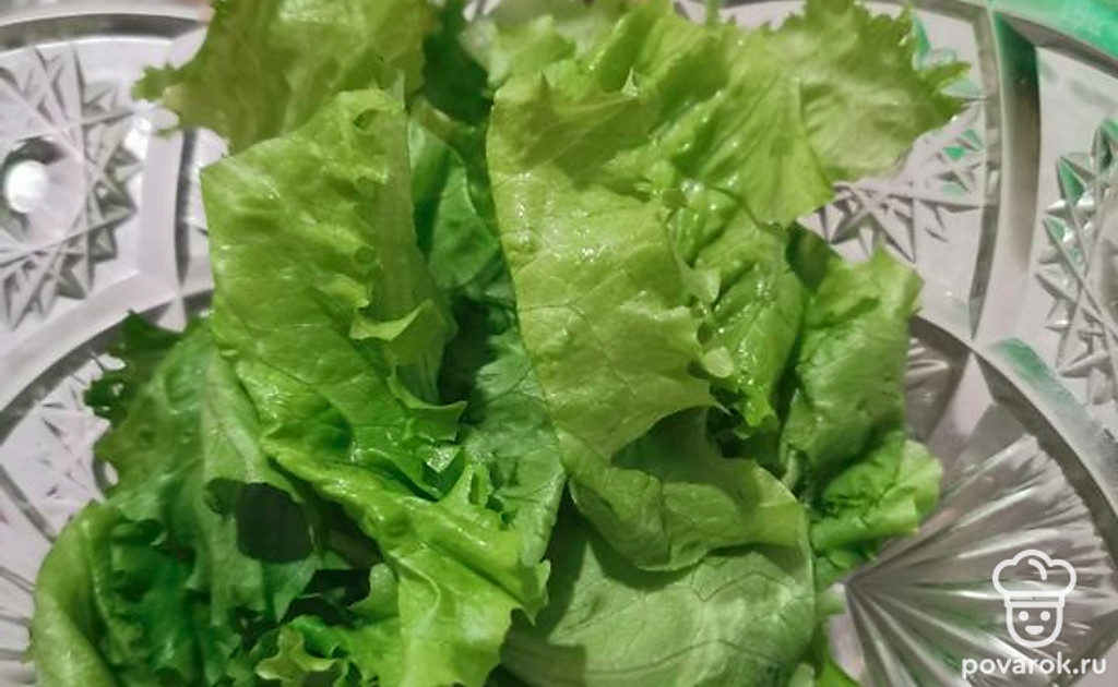 Порезать салатные листья.
