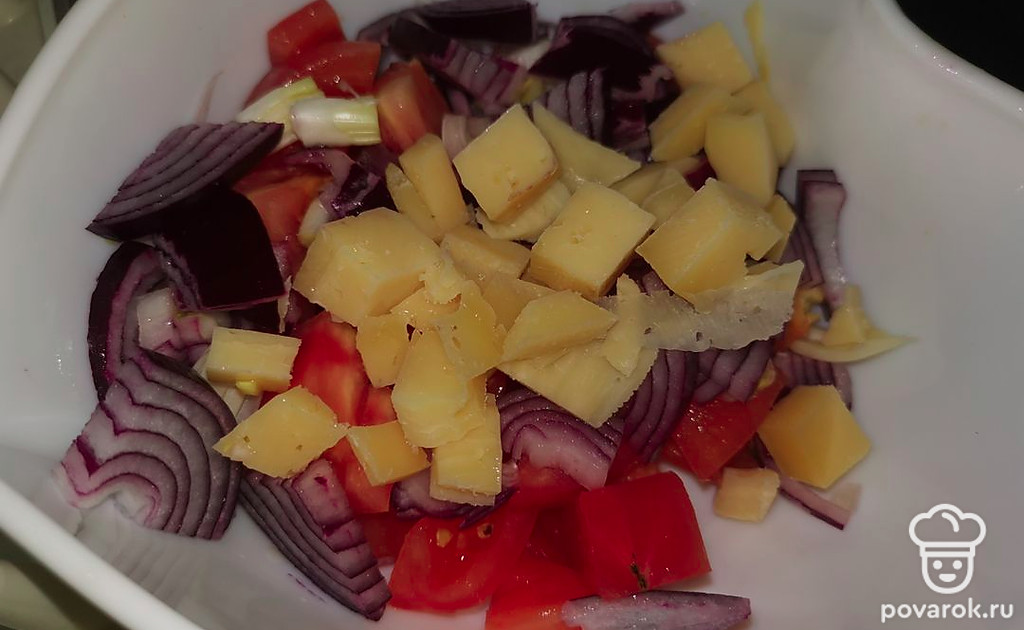 Добавим сыр к салату.