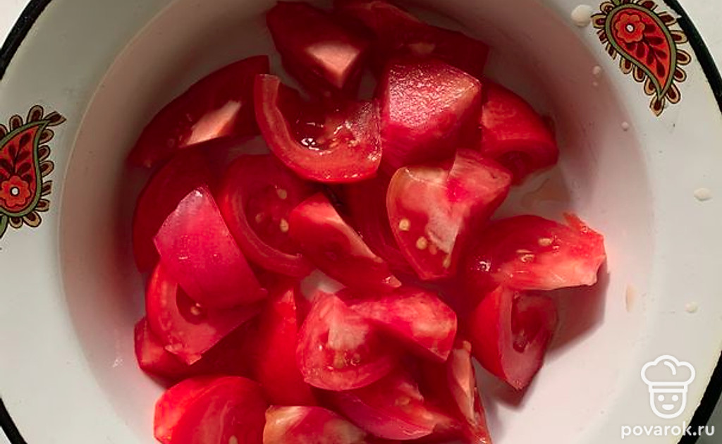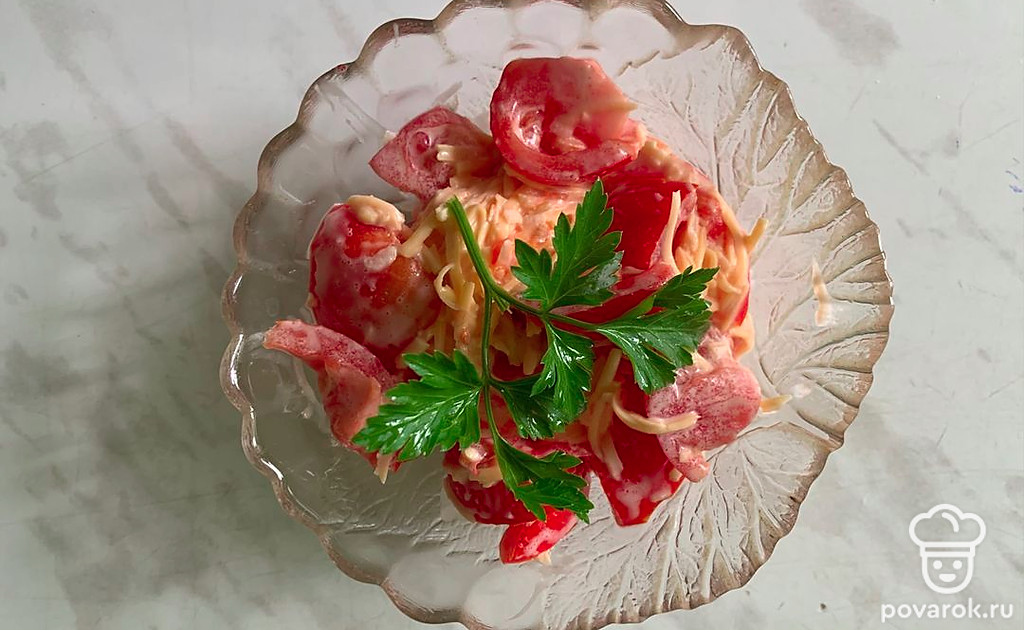 Легкий, быстрый и сытный салат. Очень выручает в сезон помидоров.
