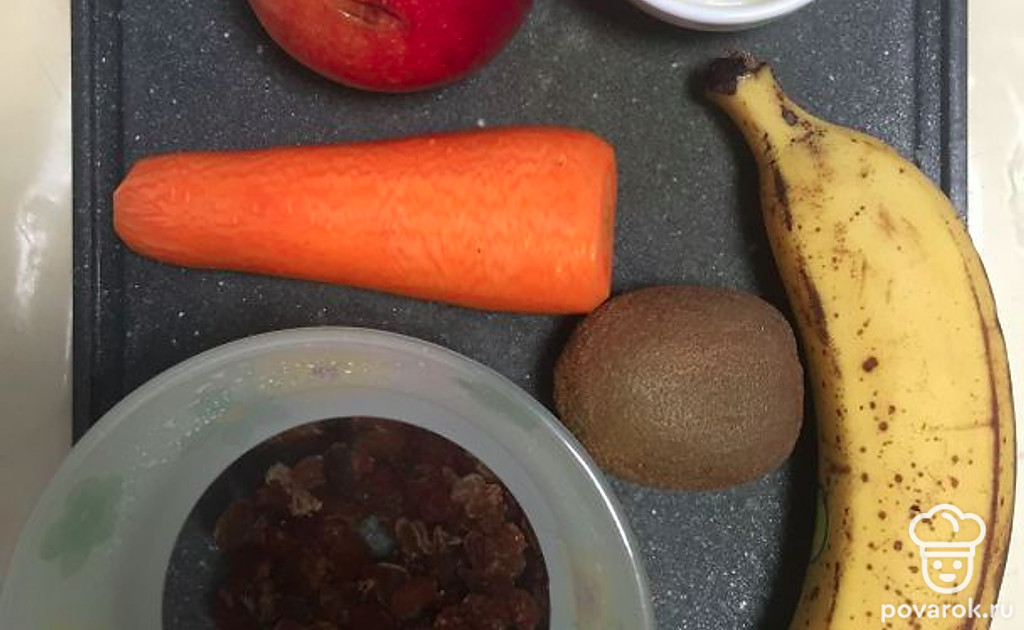 Подготовьте все ингредиенты. Изюм промыть и залить тёплой водой.
