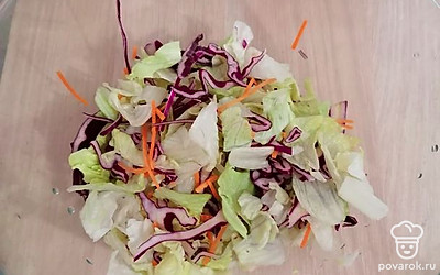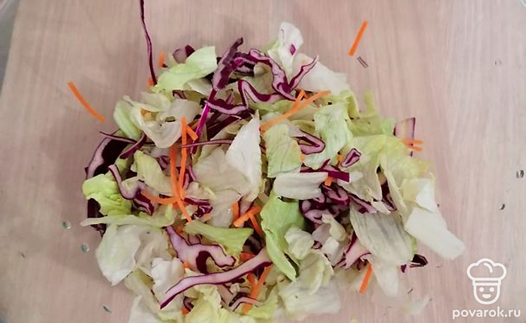 Салат айсберг положить в миску (у меня готовая салатная смесь).