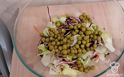Всыпать полбанки зелёного горошка.