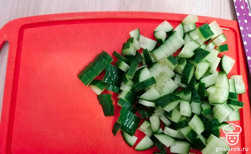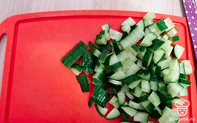 Добавить нарезанный мелким кубиком огурец.