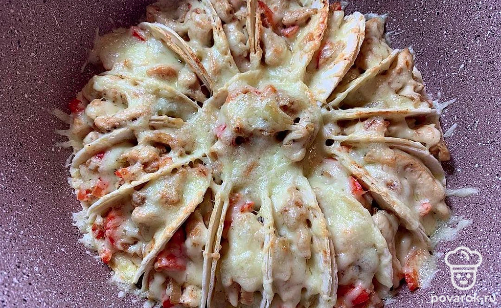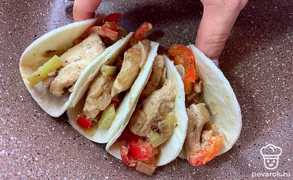 Отличная закуска на большую компанию, которая не займет много времени, просто готовится и очень соблазнительно выглядит! Тако из тортильи очень удобно начинять любимыми продуктами, туда можно выложить все, что душе угодно, но сегодня мы будем готовить дома тако с курицей и овощами под запеченным сыром.