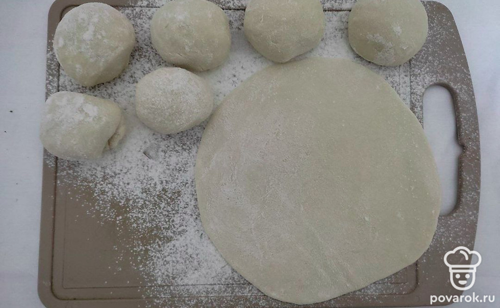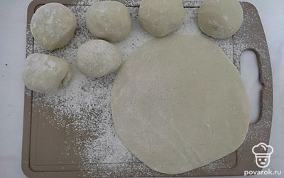 Для теста просейте муку и добавьте к ней крутой кипяток, соль и растительное масло. Замешайте тесто и дайте ему отдохнуть на 20 минут. Готовое тесто поделите на равные кусочки и раскатайте пластом, толщиной в 3-4 мм.
